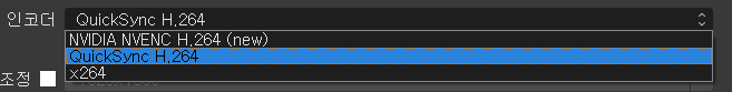 NVIDIA 그래픽 카드를 사용하면서 게임 방송을 하는 경우에는 그래픽 카드로는 게임 화면을 연산하기 때문에 Intel 내장 GPU QSV로 따로 독립적으로 방송 송출 인코딩을 하면 많이 도움이 됩니다.