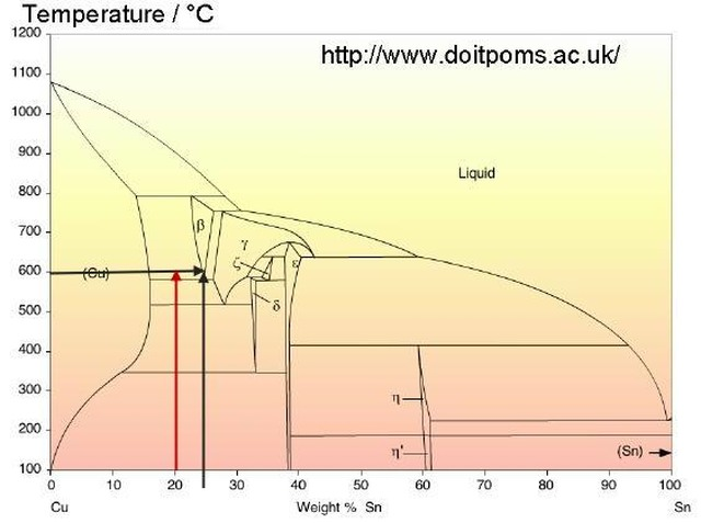 Matt Nolan의 말에 따르면: “상평형도는 특정 온도에서의 합금이 도달할 수 있는 평형 상태만 보여줍니다. 금속이 그 온도에서 충분히 오래 유지되어야 평형에 도달할 수 있으며, 그렇지 않으면 다른 상태에 있을 수 있습니다. 주석 비율, 열처리(온도와 시간), 냉간 가공(심지어 에이징까지) 모두가 결정 구조를 변화시킵니다. 특정 샘플에서 실제로 어떤 일이 일어나고 있는지를 확실히 알 수 있는 유일한 방법은 현미경으로 직접 관찰하는 것입니다. 오래된 터키산 K 심벌에서는 알파 상과 베타 상 모두가 관찰되었습니다. 평형 상태의 관점에서 이는 상평형도에서 베타 역삼각형 왼쪽 영역에 해당합니다.” (Cymbalholic 2017)