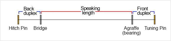 만약 똑같이 팽팽하고 무게가 같은 두 줄을 놨을 때, 한쪽이 다른 쪽의 두 배 길이라면 긴 쪽은 짧은 쪽보다 한 옥타브 낮은 음을 낸다. 그러나 이 원리를 그대로 피아노 설계에 적용한다면, 즉 가장 높은 음부터 시작하여 옥타브마다 현의 길이를 두 배씩 늘린다면, 저음부 현을 어떤 합리적인 크기의 피아노 프레임에도 담아낼 수 없게 된다. 게다가 현이 진동할 때, 진동 폭은 현의 길이와 연관이 있어 이런 가상의 초대형 피아노에서는 저음부 현들이 연주될 때 서로 부딪히게 될 것이다.