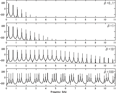 FM에 의해 생성된 음색은 다양한 배음을 담고 있고, 파라미터를 변경해서 배음 구조를 변경가능합니다.