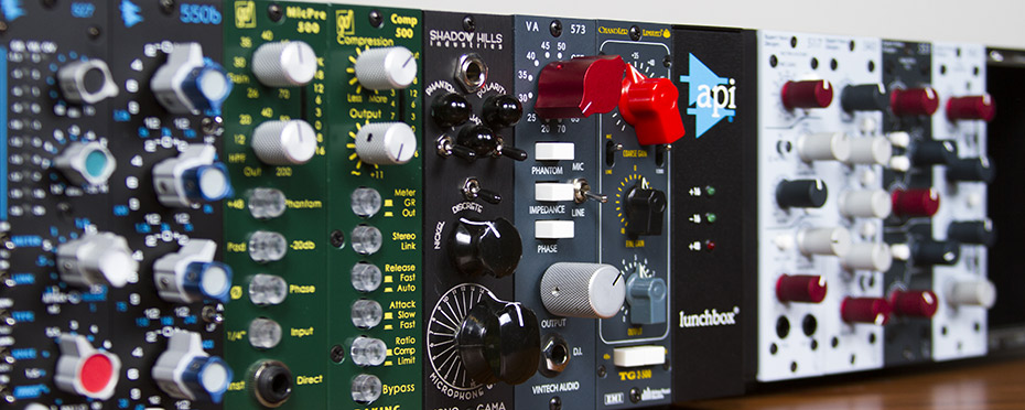 마이크 프리앰프, 컴프레서, 이퀄라이저, 딜레이, 리버브, 채널스트립, 필터 등등 여러가지 아웃보드가 있으며, 500 시리즈 모듈을 사용하려면 500 시리즈 프레임에 설치해야 한다.