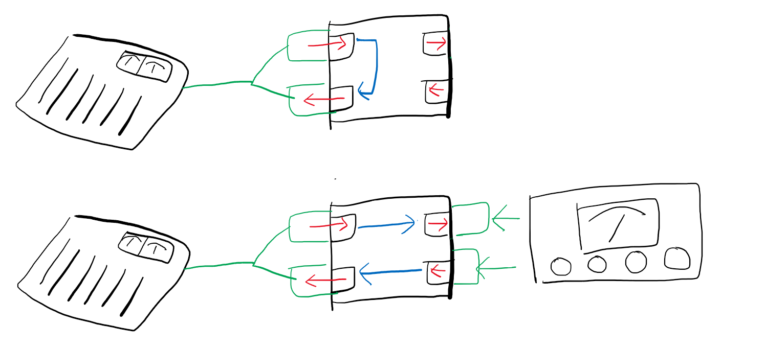 이렇게 하면 다이렉트 아웃이 없는 아날로그 믹서라고 해도 인서트를 다이렉트 아웃처럼 사용이 가능하다. 실제로 소형 믹서에서는 다이렉트 아웃이 없기 때문에 인서트 단자를 이용하여 레코더 또는 오디오 인터페이스와 연결하는 방법이다.3)