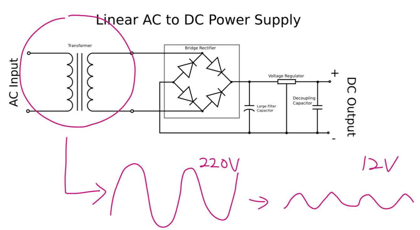 SMPS에서의 감압 과정에서는 목표 출력 DC 전압에 맞춰 감압하는 것이 목표가 아니기 때문에 그냥 일정 비율로 감압하게 된다.