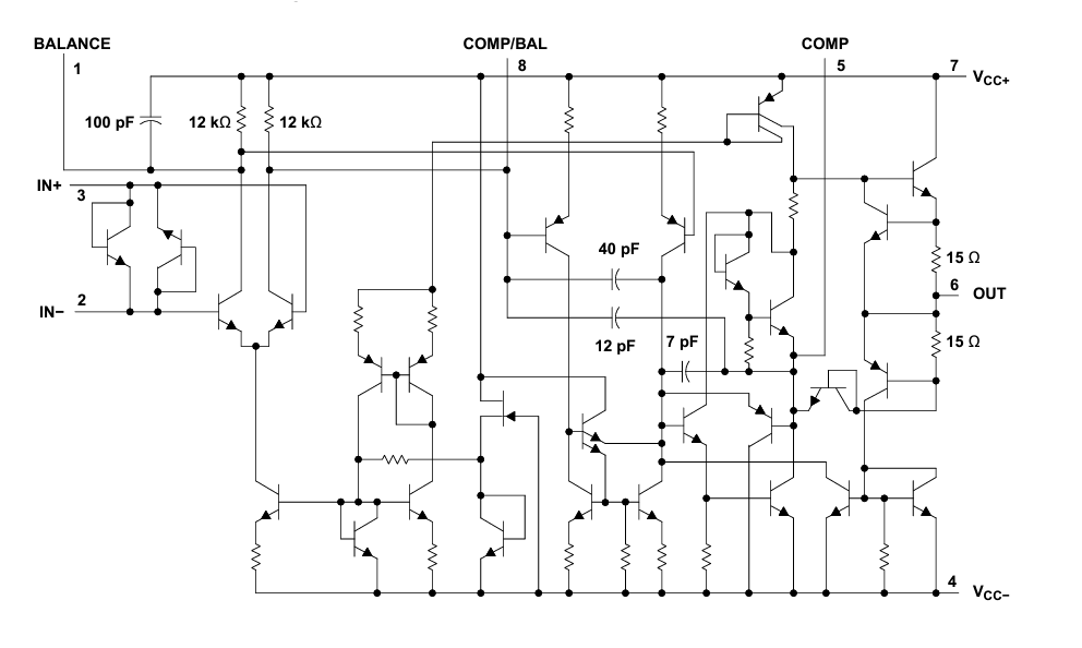 이 오퍼레이션 앰프는 내부적으로 게인이 3 이상인 것에 대해 보상됩니다. COMP 및 COMP/BAL 사이에 외부 보상 커패시터를 사용하여 다양한 응용에 대한 주파수 응답을 최적화할 수 있습니다. 이 장치에는 입력 보호 다이오드, 출력 단락 보호 및 BALANCE 및 COMP/BAL 핀을 사용한 오프셋 전압 널링 기능이 특징입니다.