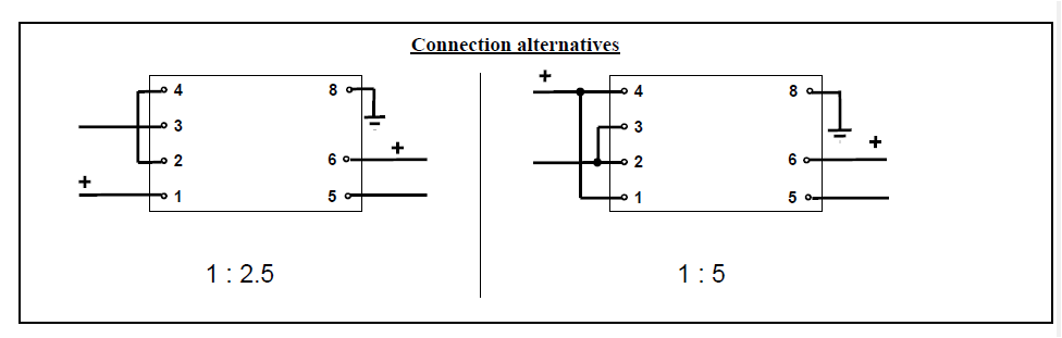 - Turns ratio: 1 + 1 : 5