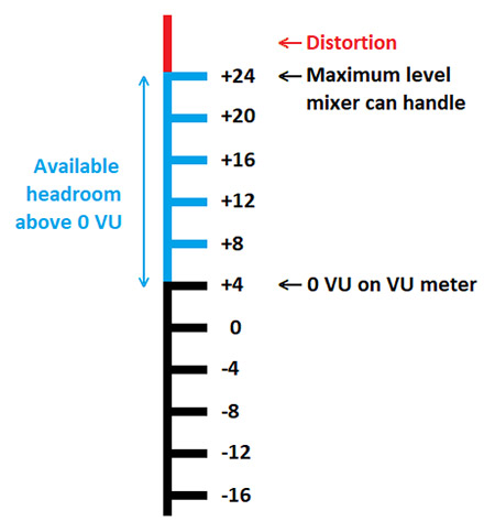 예를 들어, Neve 1073과 같은 프리앰프의 경우, 최대 입력 레벨은 +26dBu, 노미널 레벨은 +4dBu이므로, 이 장비의 헤드룸은 22dB입니다.