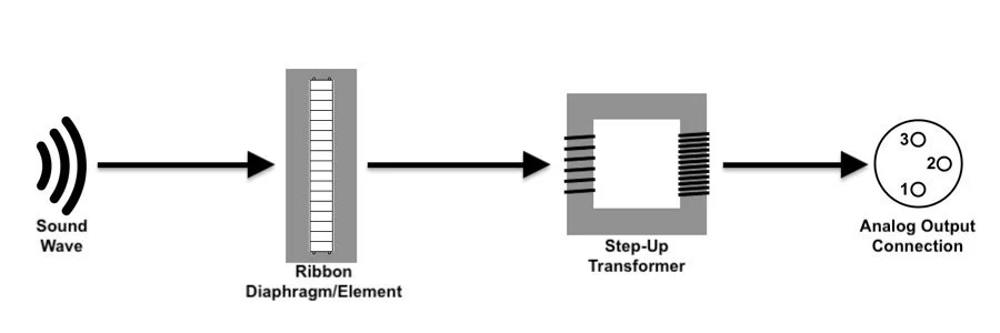 다이내믹 마이크와 원리가 비슷하다. 하지만 다이내믹 마이크는 진동판에 코일의 무게가 추가 되어 기계적인 임피던스가 높을 수 밖에 없지만, 리본 마이크의 경우 진동하는 리본의 무게가 매우 작기 때문에 기계적인 임피던스 요소가 상대적으로 작다.
