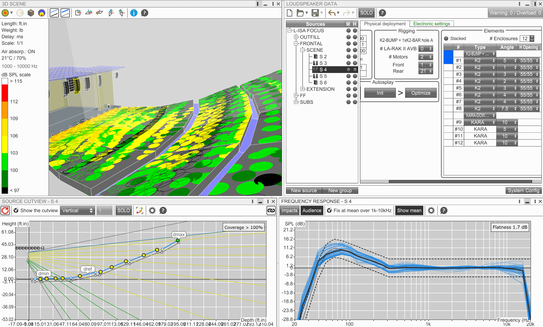 기본적인 음압과 공간에 의한 앰프와 스피커 시스템 디자인의 예시는 앞서 설명한 바와 같지만, 실제 앰프와 스피커들은 이것보다 더 복잡하게 동작하게 되므로, 실질적인 시뮬레이션 데이터는 메이저급 스피커 제조사라면, 제조사에서 시뮬레이션 소프트웨어나 데이터 시트를 제공하게 된다. 특히 스피커 제조사에서 제공하는 시뮬레이션 소프트웨어의 경우에는 3차원 공간 도면10)을 입력하면 그 회사의 스피커와 앰프 제품 별로 해당 공간에 대해서 어떻게 반응하게 되는지 시뮬레이션을 제공한다.