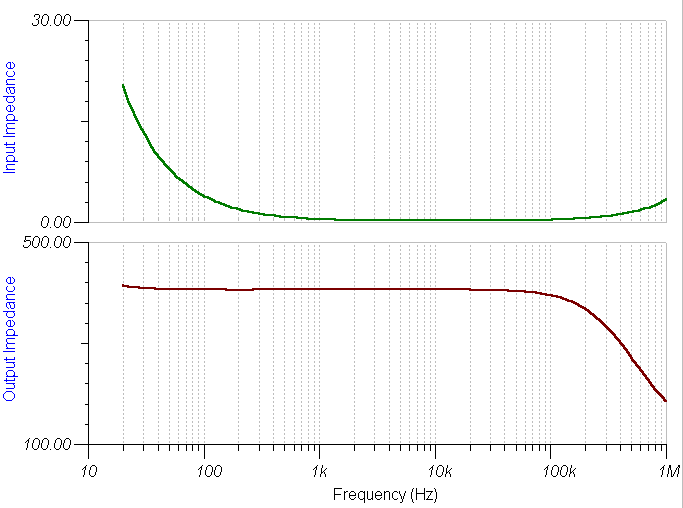 이므로 입력 임피던스 값도 약