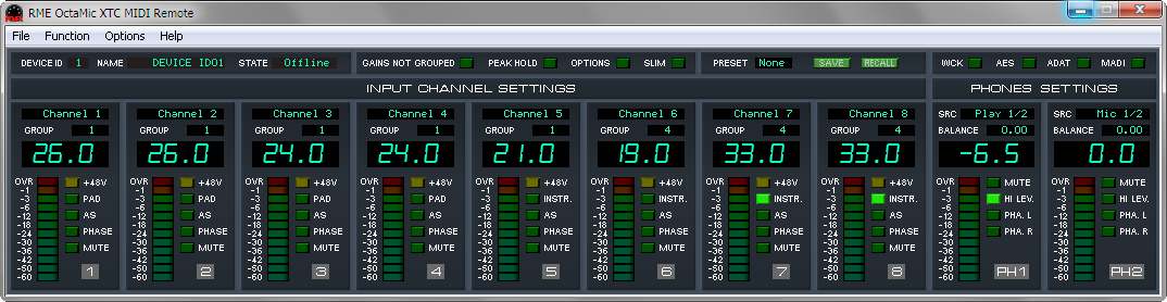 그림 5: RME Octamix XTC의 프리앰프 컨트롤