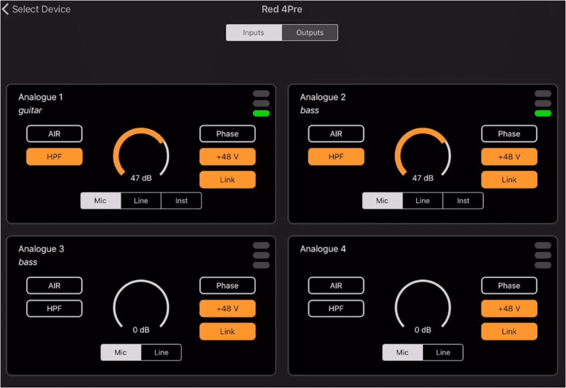 그림 6: Focusrite RED4PRE의 프리앰프 컨트롤