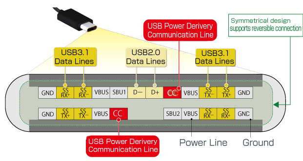 기존의 USB의 전력 공급은 5V로 전압이 고정되어있는 상태에서 전류량을 늘려 USB2.0(2.5W), USB3.0(4.5W), USB BC(7.5W), USB-C(15W)의 전력 공급을 했던 것에 비하여, USB PD 는 전압 자체도 다양하게(5V, 9V, 15V, 20V 등) 변화시켜 전력을 공급할 수 있어서 훨씬 더 높은 전력 공급이 가능하다는 것이 가장 큰 차이이다. USB PD는 USB 인터페이스를 통해 최대 240W까지 전력을 전달할 수 있으며, 이는 스마트폰, 태블릿, 노트북 등 다양한 장치를 충전하는 데 사용된다. USB PD 단자는 출력, 입력으로 두가지로 모두 사용할 수 있다.