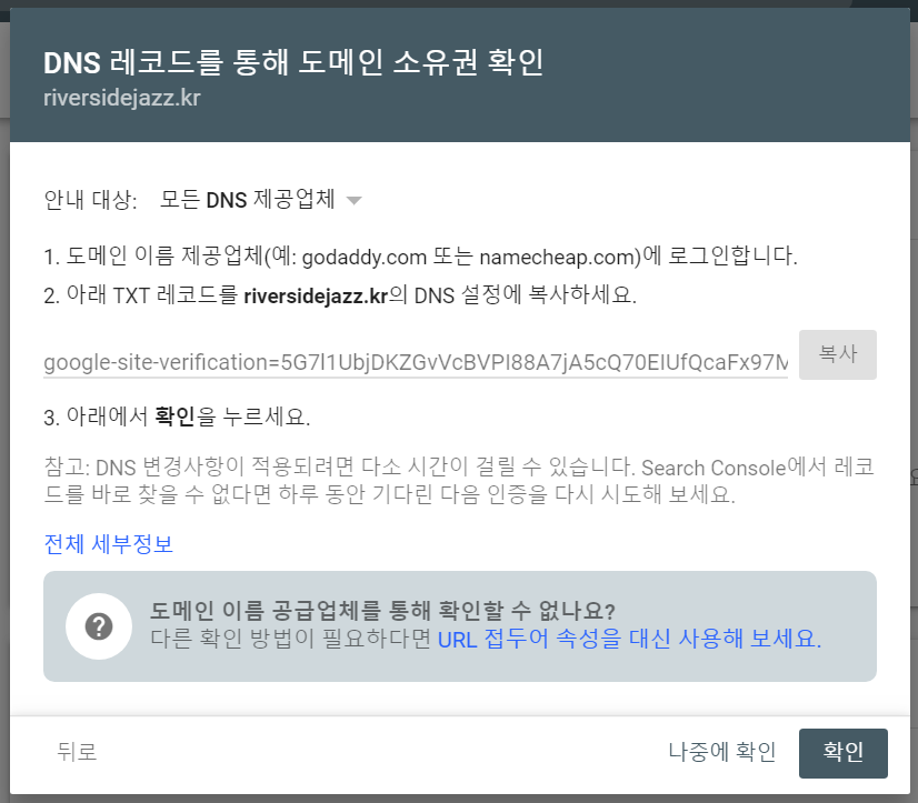 DNS 레코드의 txt 에 해당 키를 기록하면 된다고 한다.