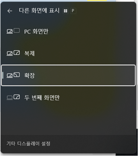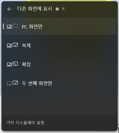 - 윈도우 키 + P 를 동시에 누릅니다.