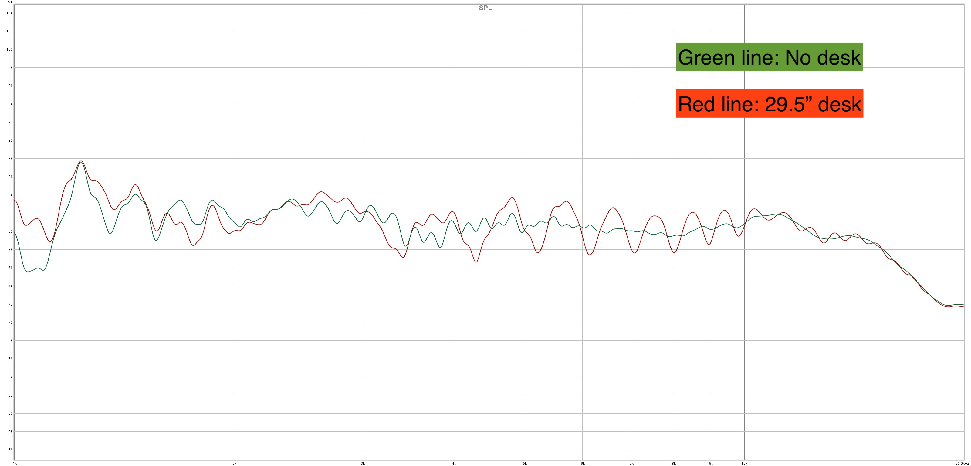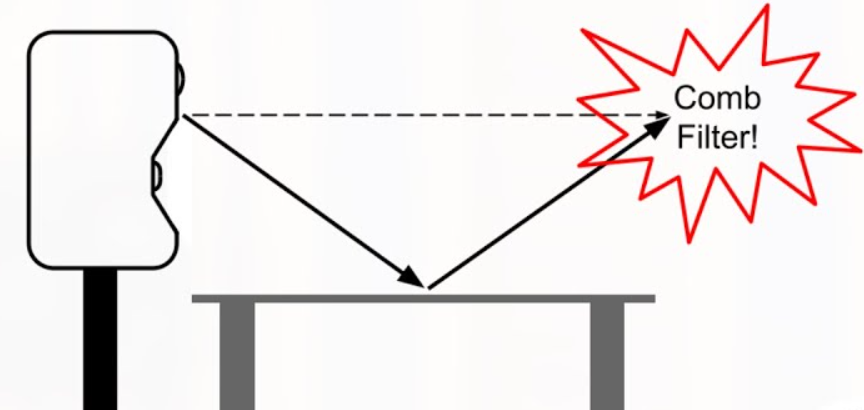 스피커에서 나오는 직접음과 책상에서 한번 반사되어 도달하는 소리가 중역대에서 콤 필터링을 일으키게 된다.