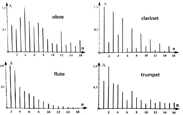 기음배음에 의해 생성되는 음색은 기본적으로 아래와 같이 기음기음에 대해 정수배인 배음으로 표현된다.