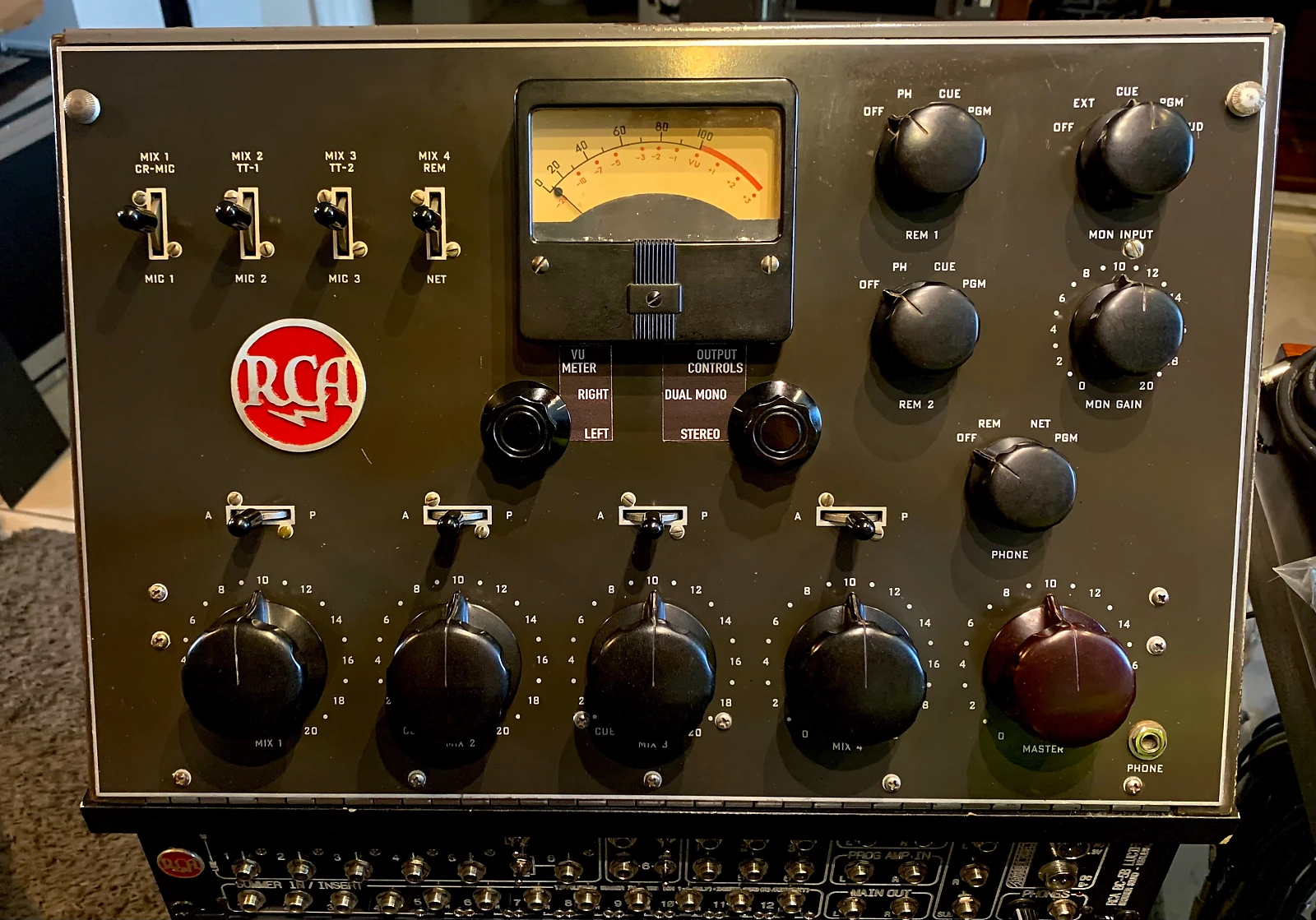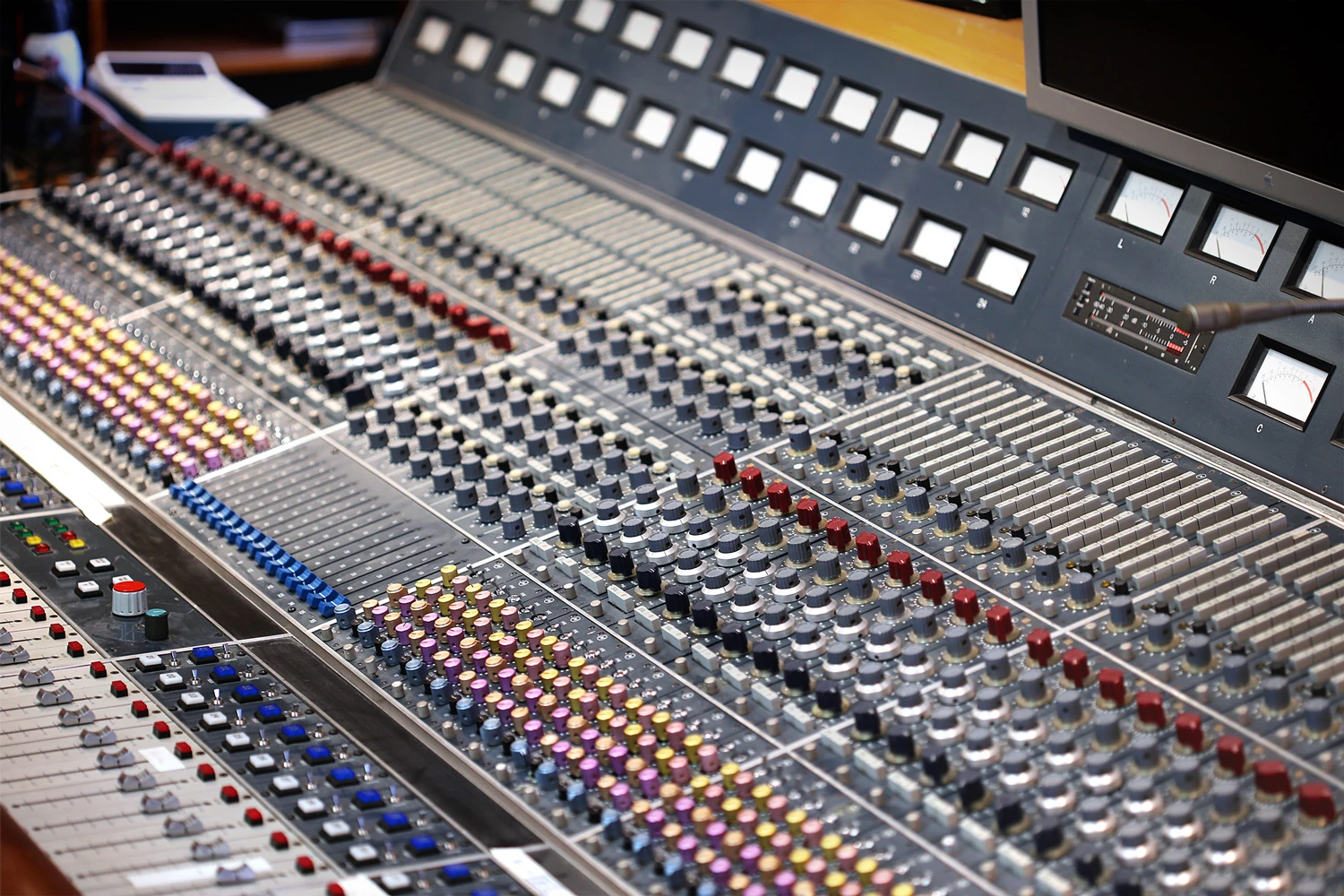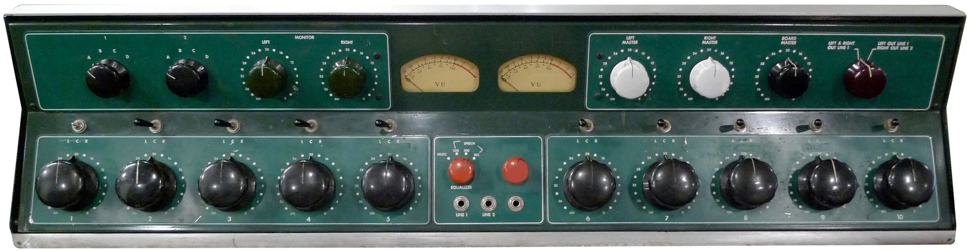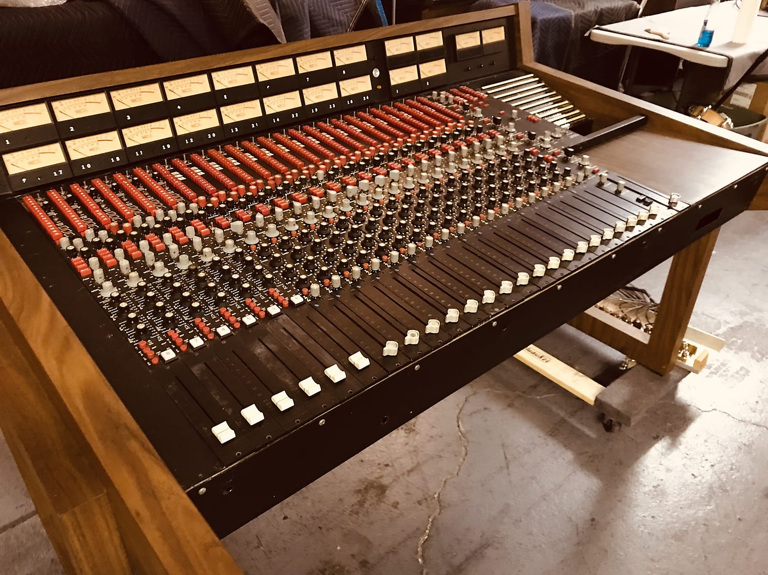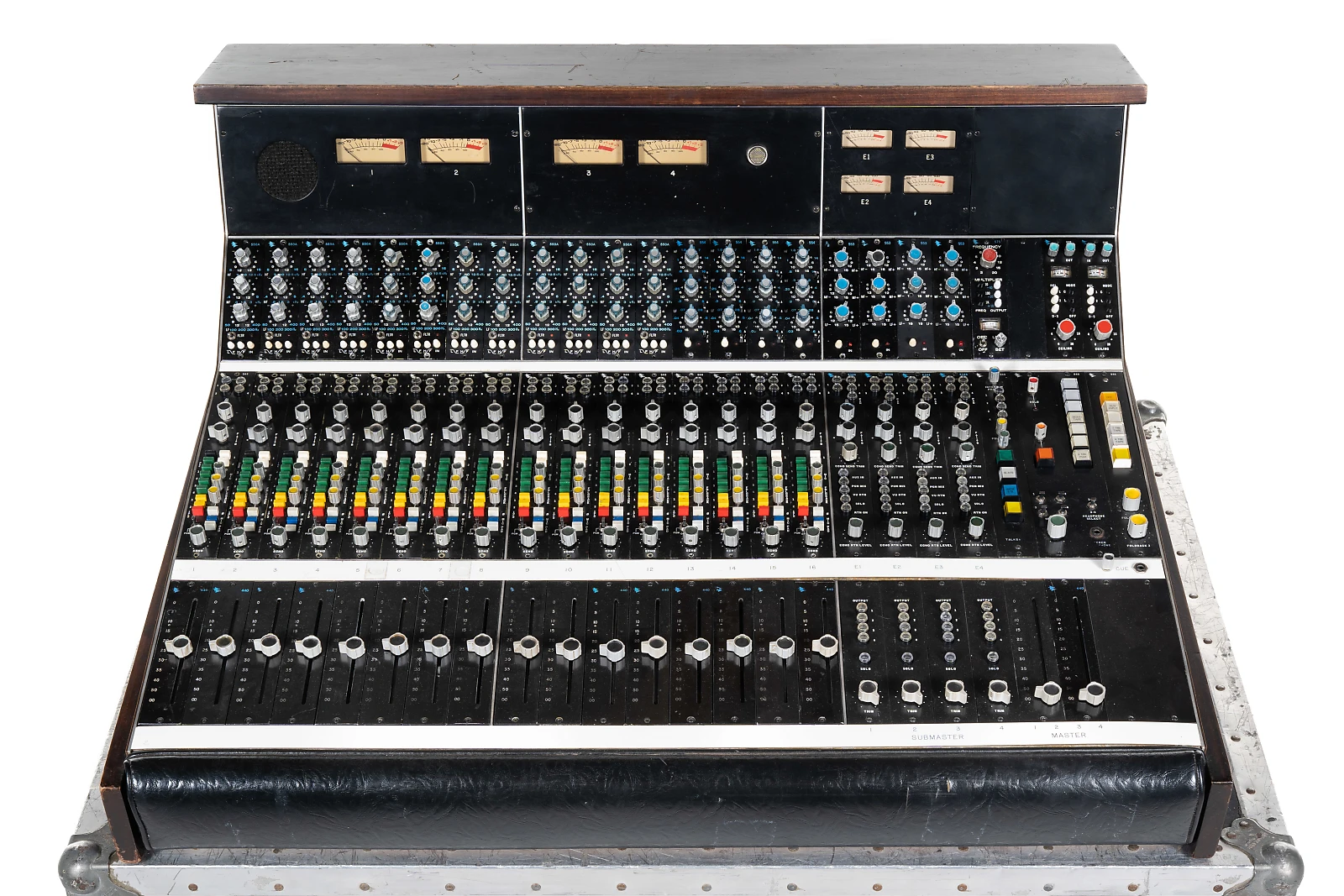 최초의 녹음 용 콘솔로 알려진 제품은 1956년 Les paul 이 8 트랙 멀티트랙 레코더에 사용하기 위해 주문 제작한 The Octopus 입니다.