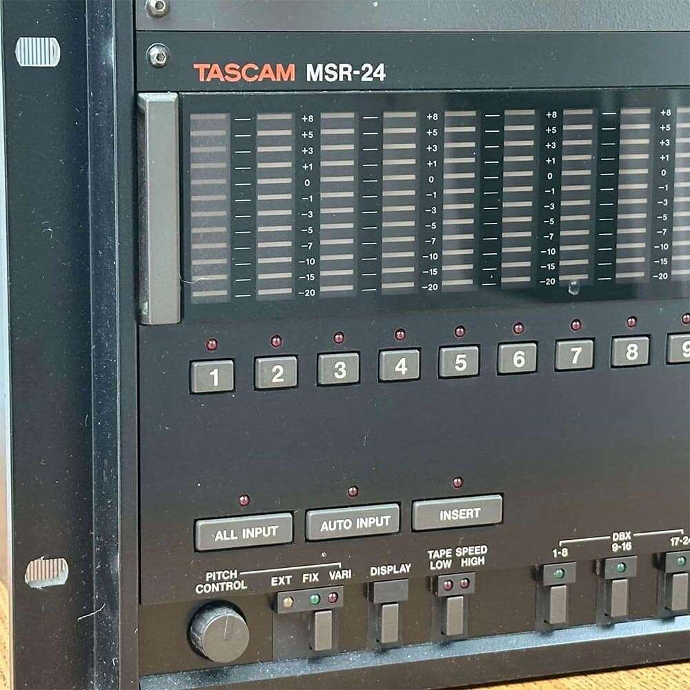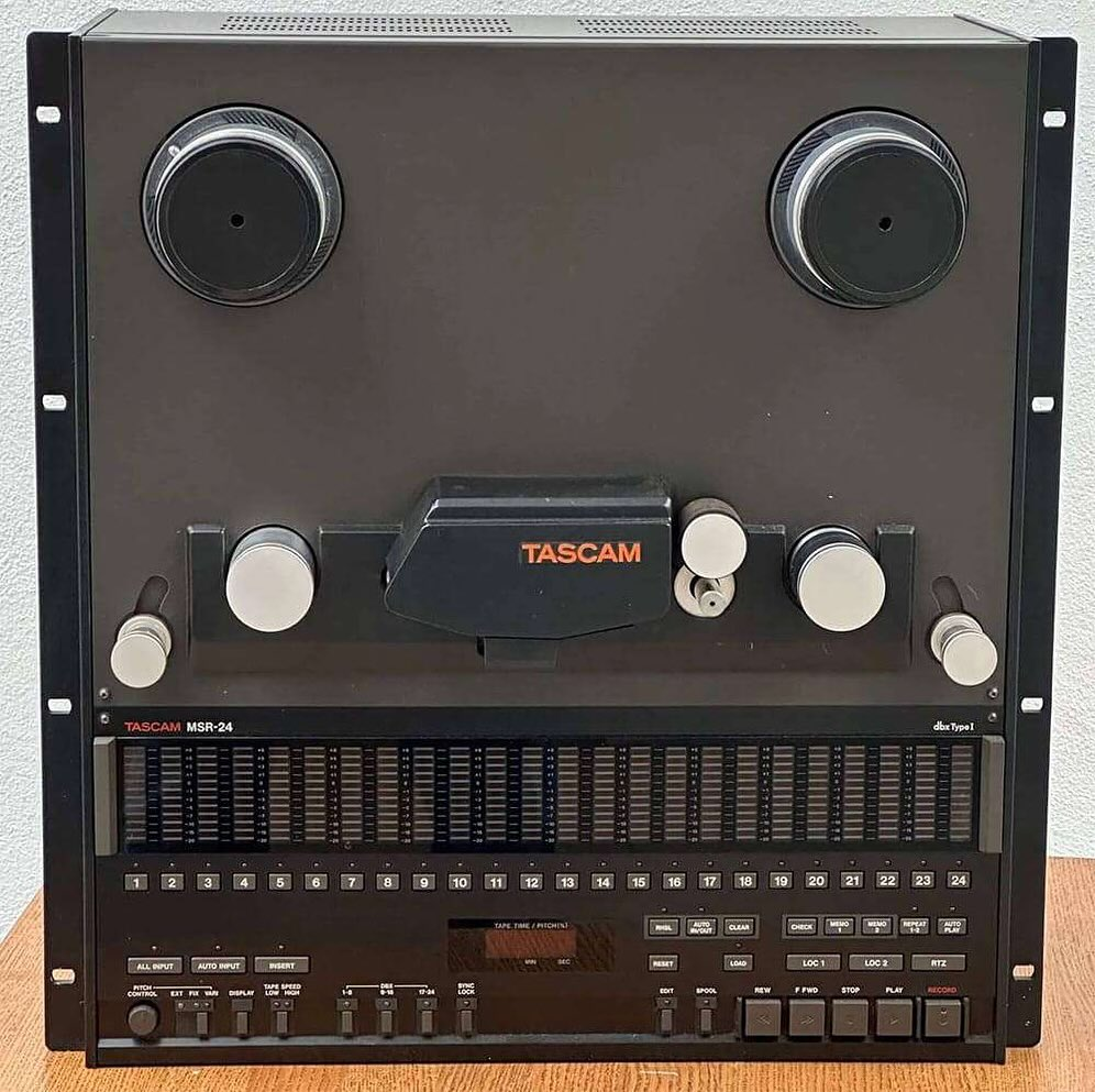 Tascam MSR-24는 1989년부터 1996년까지 생산된 일본 Tascam(TEAC)의 1인치 24트랙 아날로그 릴투릴 테이프 레코더입니다. 홈 스튜디오와 준프로 스튜디오 시장에서 “대중적인 24트랙“의 표준을 제시한 모델로, MSR-24S는 Dolby S 노이즈 리덕션이 내장된 최상위 사양입니다.