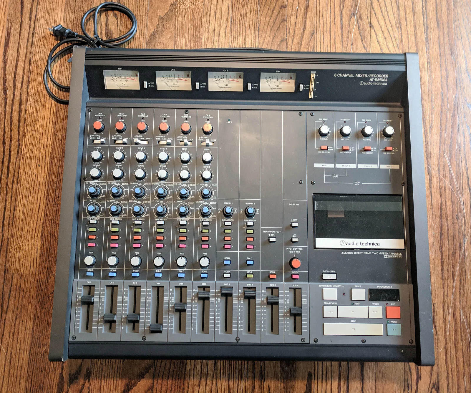 Audio Technica AT-RMX64는 1985년에 출시된 고급형 4-트랙 카세트 멀티트랙 레코더로, 6채널 믹서와 다양한 프로페셔널 기능을 탑재한 스튜디오장비입니다. 다소 무거운 22kg의 메탈 섀시로 제작되어 견고하며, 휴대성보다는 스튜디오 환경에 적합합니다.