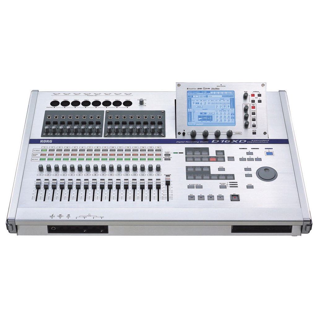 Korg D16XD는 16트랙 및 24트랙 머신으로 가득한 시장에서 32트랙 재생을 제공하는 최초의 프로젝트 스튜디오 멀티트랙 레코더입니다. 이동 페이더 자동화, 터치스크린, 내장 40GB 하드 드라이브 및 CD 버너, 광범위한 온보드 프로세싱을 갖추고 있으며, 한 번에 최대 16트랙을 녹음하고 최대 32트랙을 재생할 수 있습니다.
