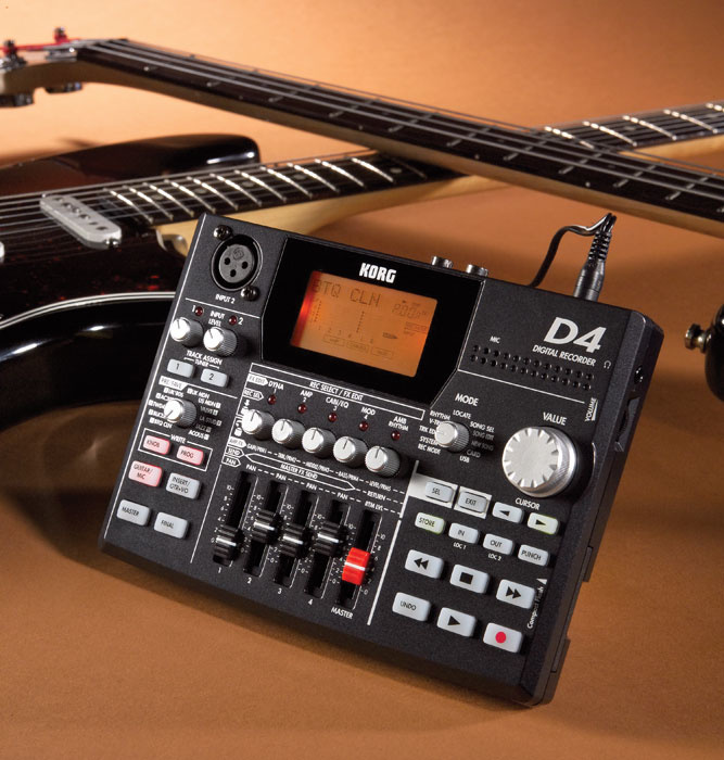 Korg D4는 저렴한 가격으로 간단한 데모를 녹음할 수 있는 방법을 제공하며, 많은 사람들이 성장했던 카세트 4트랙의 현대판과 같습니다.