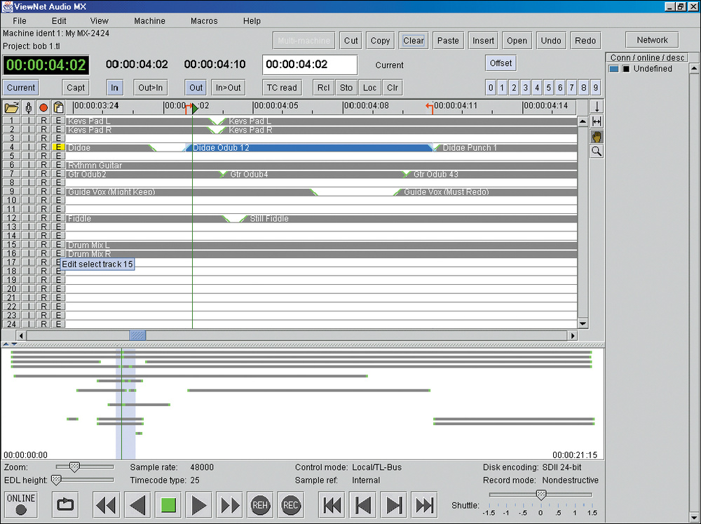 컴퓨터 기반 멀티트랙 레코딩은 뛰어난 잠재력과 유연성을 제공하지만, 복잡성과 어려움이 따릅니다. 많은 사용자들이 트랙 선택, 입력 레벨 조절, 녹음 시작과 같은 간단한 테이프 레코더 방식을 선호합니다. 테이프는 되감는 데 시간이 걸리고, 편집 기능이 제한적이며, 멀티트랙 디지털 테이프 시스템은 동기화에 시간이 소요될 수 있습니다. 하지만 MX2424는 테이프 레코더와 유사한 작동 방식을 채택하면서도 하드웨어 기반으로 레이턴시, 불안정성, 복잡한 운영 체제 문제를 해결했습니다.