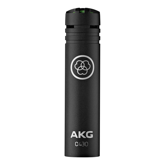 AKG C430은 고정 카디오이드 패턴을 가진 소형 FET 콘덴서 마이크로, 심벌과 드럼 오버헤드 마이킹에 특화된 모델입니다. 비교적 낮은 감도와 높은 셀프 노이즈로 조용한 어커스틱 소스에는 적합하지 않습니다.
