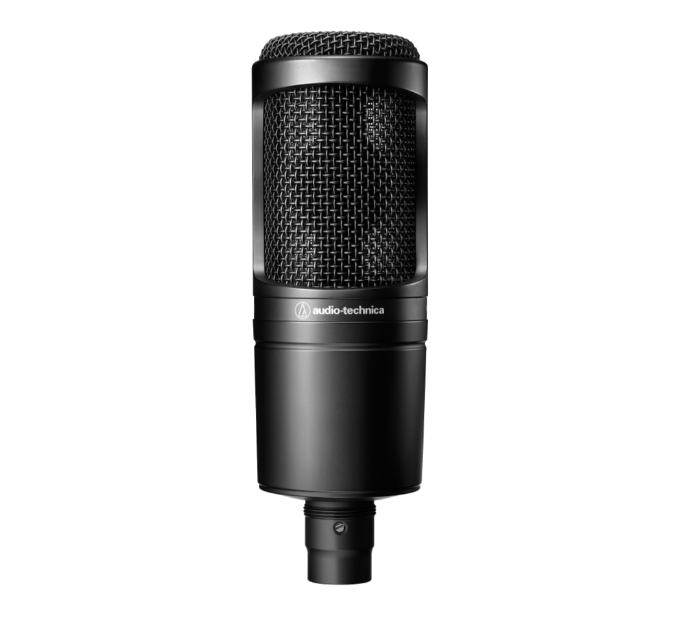 Audio-Technica AT2020는 저렴한 가격대의 고정 카디오이드 패턴을 가진 일렉트렛 콘덴서 마이크입니다. 16mm 직경의 캡슐을 사용하며, 간단한 회로 설계와 소형 트랜스포머를 특징으로 합니다.