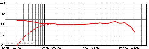 마이크의 스위치로 -10dB 패드와 80Hz에서 -12dB/octave 하이패스 필터를 조절할 수 있습니다.