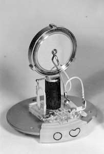 KM88 마이크의 KK88 캡슐 중 하나는 다이어프램 재료로 두께가 0.0007mm (0.7μm)인 순수 니켈을 사용합니다. 캡슐 조립 시에는 알루미늄 호일 스페이서 링이 중심과 전극 가장자리에 40μm 두께로 부착됩니다. 극성화 전압을 위한 리드인 접점이 중앙에 장착됩니다. 이는 캡슐이 직접 테스트 기기에 연결되어, 캐패시턴스가 측정되고 다이어프램의 기계적 강도가 시험될 수 있는 조립 장치입니다. 극성화 전압이 적용된 후 기본 캐패시턴스의 변화를 측정함으로써 이루어집니다.