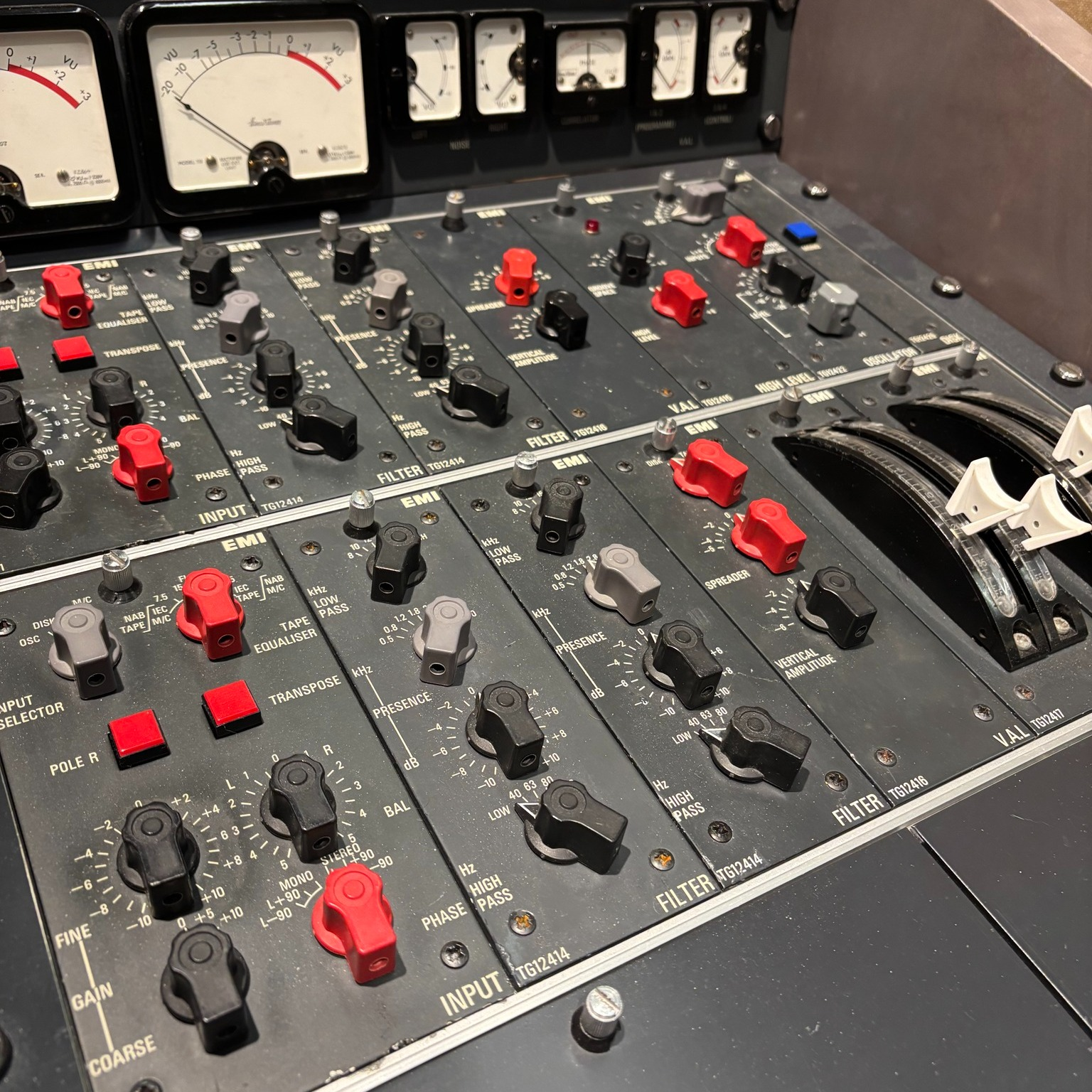 EMI TG12410은 Abbey Road Studios에서 사용된 전설적인 마스터링 및 트랜스퍼 콘솔로, 1970년대 초반에 설계되어 음악 역사에서 중요한 역할을 한 장비입니다.