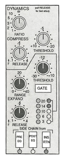 인라인 방식의 대표적인 믹싱 콘솔. 인라인 방식이기 때문에 다루기 어려운 측면도 있다.