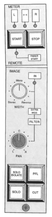 모노 채널에는 이 위치에 스몰 페이더가 있지만 스테레오 채널에는 스몰 페이더 대신 Remote/Image가 위치 하고 있다. 해당 채널에 연결된 멀티 트랙 레코더나 여러가지 장비를 리모트 컨트롤 하고, 해당 채널에 대한 스테레오 이미지 등을 컨트롤 한다.