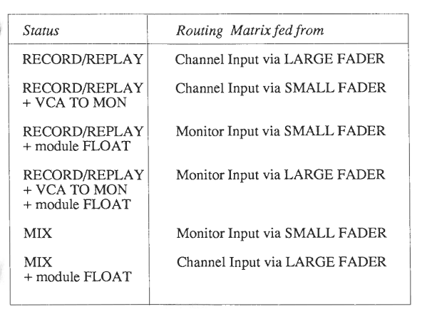 SSL 4000 콘솔은 Status 설정에 따라 Large fader와 Small fader의 역할이 상황에 맞게 변한다. 13) 핵심은, Group Routing Matrix 가 어느 페이더 출력을 통해 적용되는 지가 중요하다.