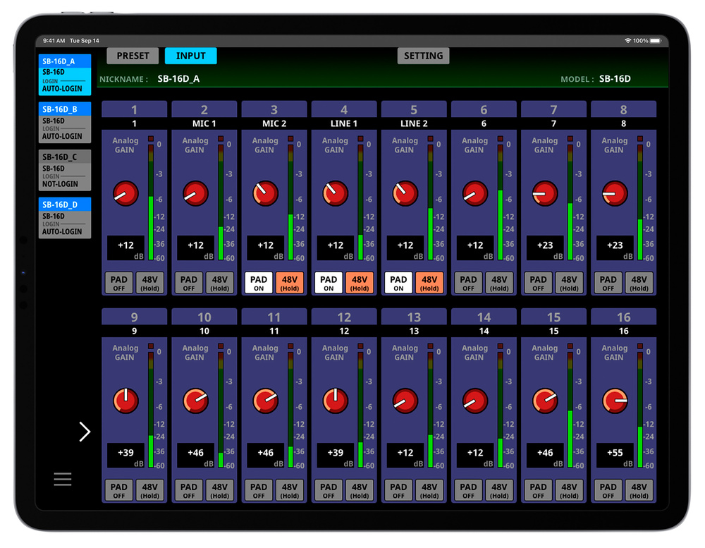 Tascam Sonicview 24는 Tascam이 새롭게 설계한 플래그십 디지털 믹서로, 라이브, 방송, 레코딩 등 다양한 환경에서 사용할 수 있는 강력한 성능과 유연성을 제공합니다. 2024년 기준 최신 펌웨어(v1.6.0)로 방송용 기능까지 강화되었으며, 동급 최고 수준의 오디오 품질, 직관적인 터치 인터페이스, 확장성, 그리고 신뢰성 높은 하드웨어가 결합된 차세대 디지털 콘솔입니다.