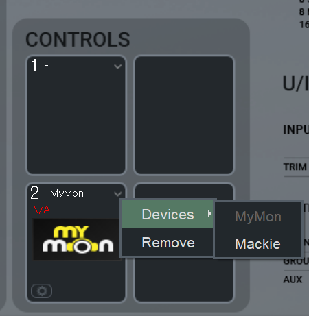 LV1 이나 SoundGrid Studio 의 Setup 에서 설정 가능하며, 아래와 같이 MyMon 모듈을 불러온다.