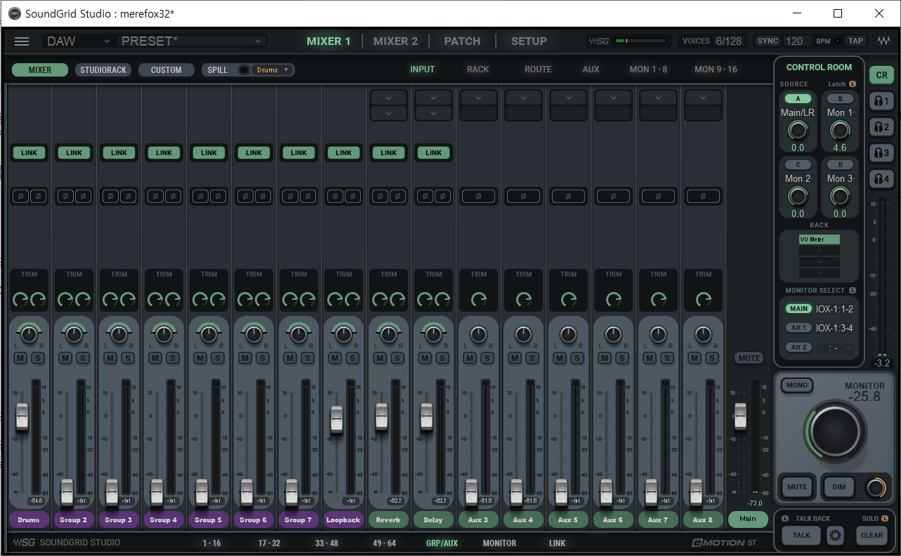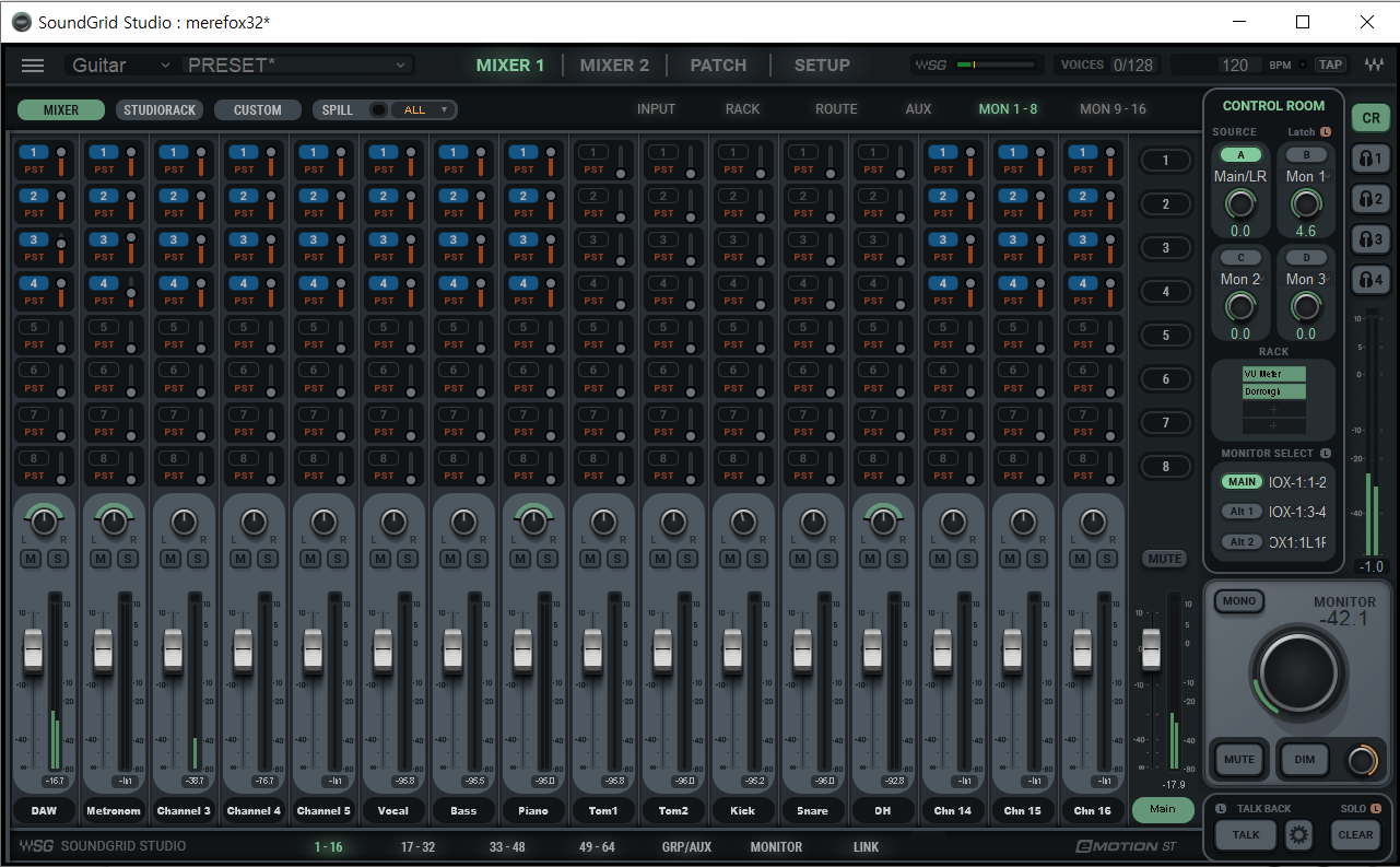 Emotion ST(SoundGrid studio) 믹서는, DAW 에서 SoundGrid 플러그인을 SoundGrid DSP 로 사용하기 위해서 쓰는 어플리케이션 겸, 다이렉트 모니터링 용 DSP 믹서이다.