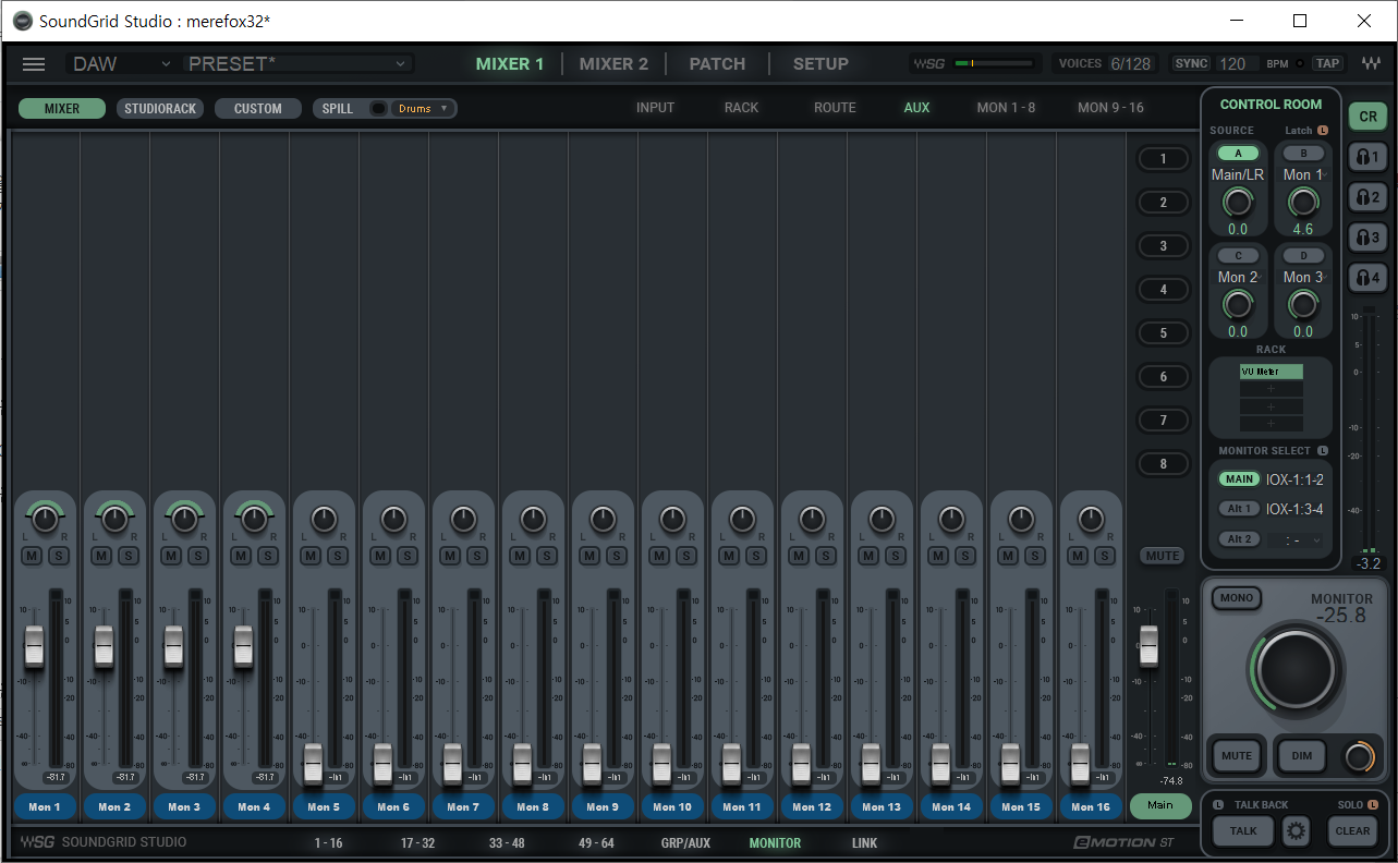 DAW 에서 SoundGrid 플러그인을 걸고 실시간으로 다이렉트 모니터링을 할수있고, 믹싱 시에도 DSP로 플러그인을 사용할 수 있다.