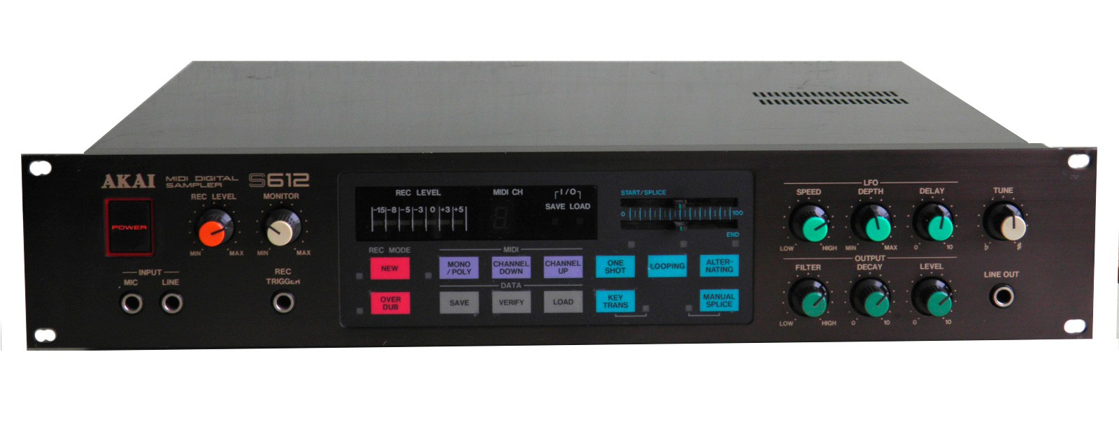 S612는 1985년에 출시된 아카이의 첫 번째 프로페셔널 랙 마운트 샘플러 중 하나였습니다. 이 샘플러는 4kHz에서 32kHz까지 12비트 샘플링을 지원하며, 루프 및 트렁케이트 기능, 오버더브 기능, 마이크 또는 라인 입력 잭 등을 제공했습니다. 내부 메모리는 128KB로, 가장 낮은 샘플링 속도에서 최대 8초의 샘플링 시간을 제공합니다. 샘플을 영구적으로 저장하려면 선택적인 디스크 드라이브가 필요하며, Quick Disk (QD) 2.8인치 포맷을 지원합니다. 디스크의 각 면에는 하나의 샘플만 저장할 수 있습니다.