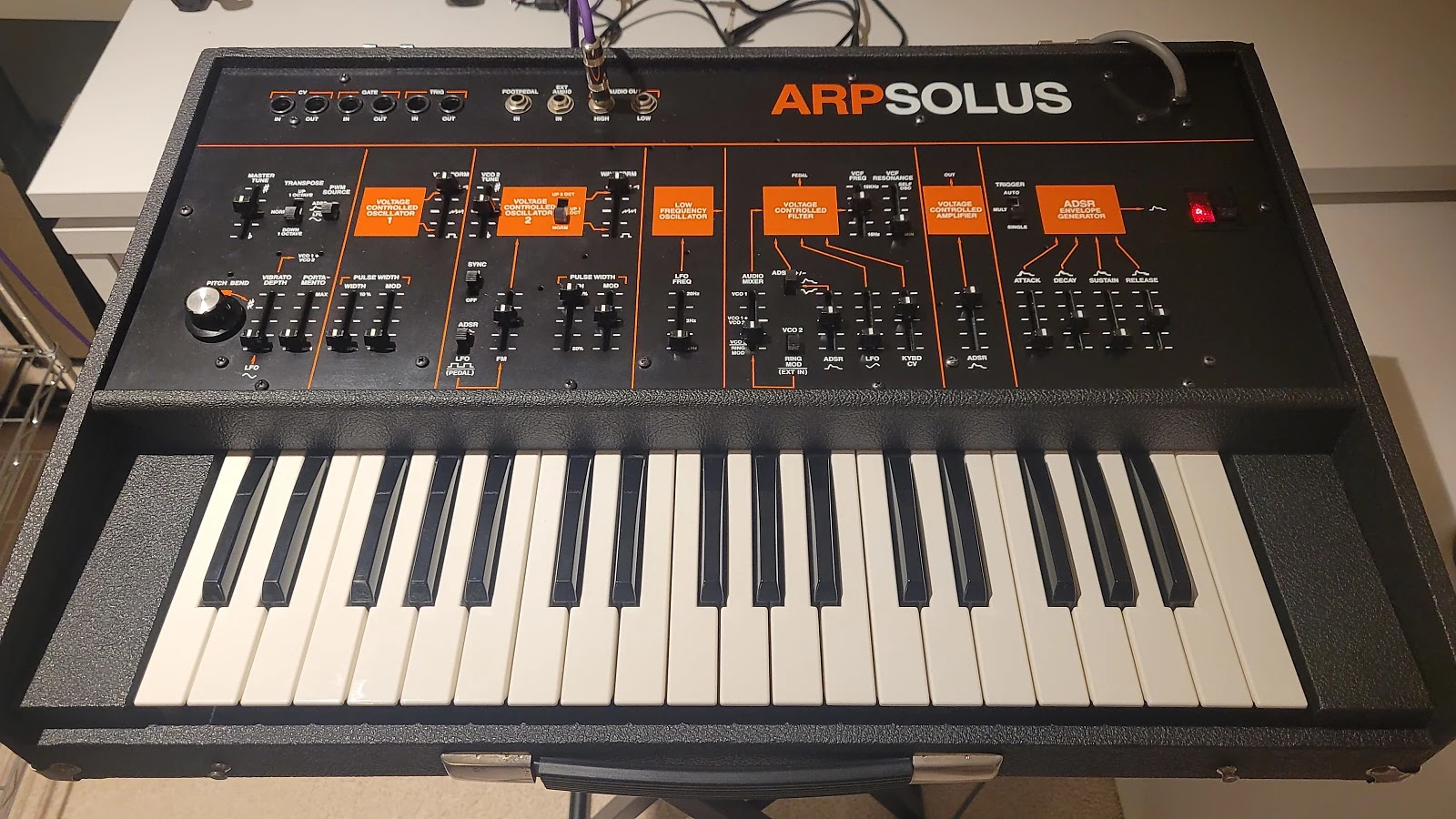 ARP Solus는 Axxe와 Odyssey 사이에 위치한 가볍고 휴대성이 뛰어난 신디사이저입니다. Solus는 모노포닉이며, 펄스 폭 변조와 디지털 링 모듈레이터를 포함한 2개의 오실레이터를 갖추고 있습니다. FM 슬라이더를 사용하면 외부 사운드 소스를 VCO #1을 통해 링 모듈레이션할 수 있어 이 신디사이저는 기발한 사운드를 생성하는 데 적합한 아날로그 링 모듈레이터로서의 기능도 추가됩니다. 뛰어난 ARP VCF(필터)가 훌륭한 사운드를 더해줍니다. 피치 벤딩은 간단한 노브를 사용하여 수행됩니다. 휴대성을 고려하여 설계된 이 신디사이저는 매우 잘 만들어진 로드 케이스에 패키징되어 제공됩니다. Tangerine Dream에 의해 사용되었습니다.