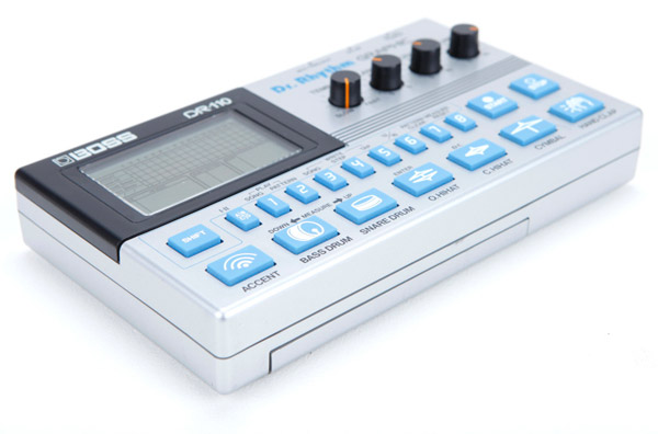 1980년, 롤랜드는 첫 번째 간단하고 저렴한 드럼 머신인 BOSS Dr. Rhythm 브랜드 (DR-55)를 출시했습니다. 이 머신은 네 가지 사운드, 악센트 및 제한된 프로그램 패턴 수를 제공했습니다. 이어서 1983년에는 Dr. Rhythm Graphic (DR-110)이 출시되었는데, 이 제품은 더 다양한 사운드, 프리셋 패턴, 더 많은 프로그램 패턴 및 패턴을 연결하여 곡을 형성하는 기능을 제공했습니다. 첫 번째 Dr. Rhythm의 간단한 스텝 프로그래밍은 각각의 음표와 쉬는 음표를 번갈아가며 버튼을 누르는 방식으로 이루어졌으며, 현재 패턴의 개별 음표를 보여주는 그리드가 있는 LCD로 보완되었습니다. 스텝 프로그래밍 외에도 메트로놈 클릭이 없는 “탭 라이트” 프로그래밍 모드도 있습니다.