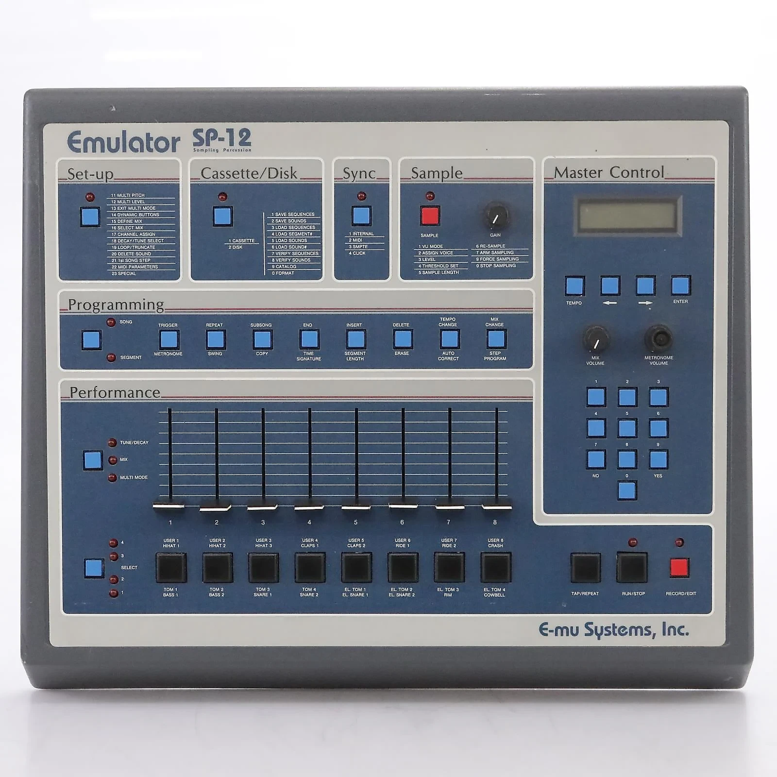 E-mu SP-12 Drum Sampler는 초기 1990년대의 클래식한 드럼머신입니다. Dr. Dre, The Prodigy, Moby를 포함한 많은 힙합 및 일렉트로닉 음악 프로듀서들이 사용했습니다. 내장 시퀀서와 다양한 사운드 쉐이핑 기능을 갖춘 12비트 샘플러입니다. 드럼, 퍼커션, 베이스를 포함한 내장된 사운드 라이브러리와 외부 소스에서 샘플을 채취하고 저장할 수 있는 기능을 갖추고 있습니다. 또한 리버브, 딜레이, 디스토션을 비롯한 다양한 이펙터를 제공합니다. SP-12는 여전히 많은 프로듀서들에 의해 오늘날에도 사용되는 클래식한 장비입니다.