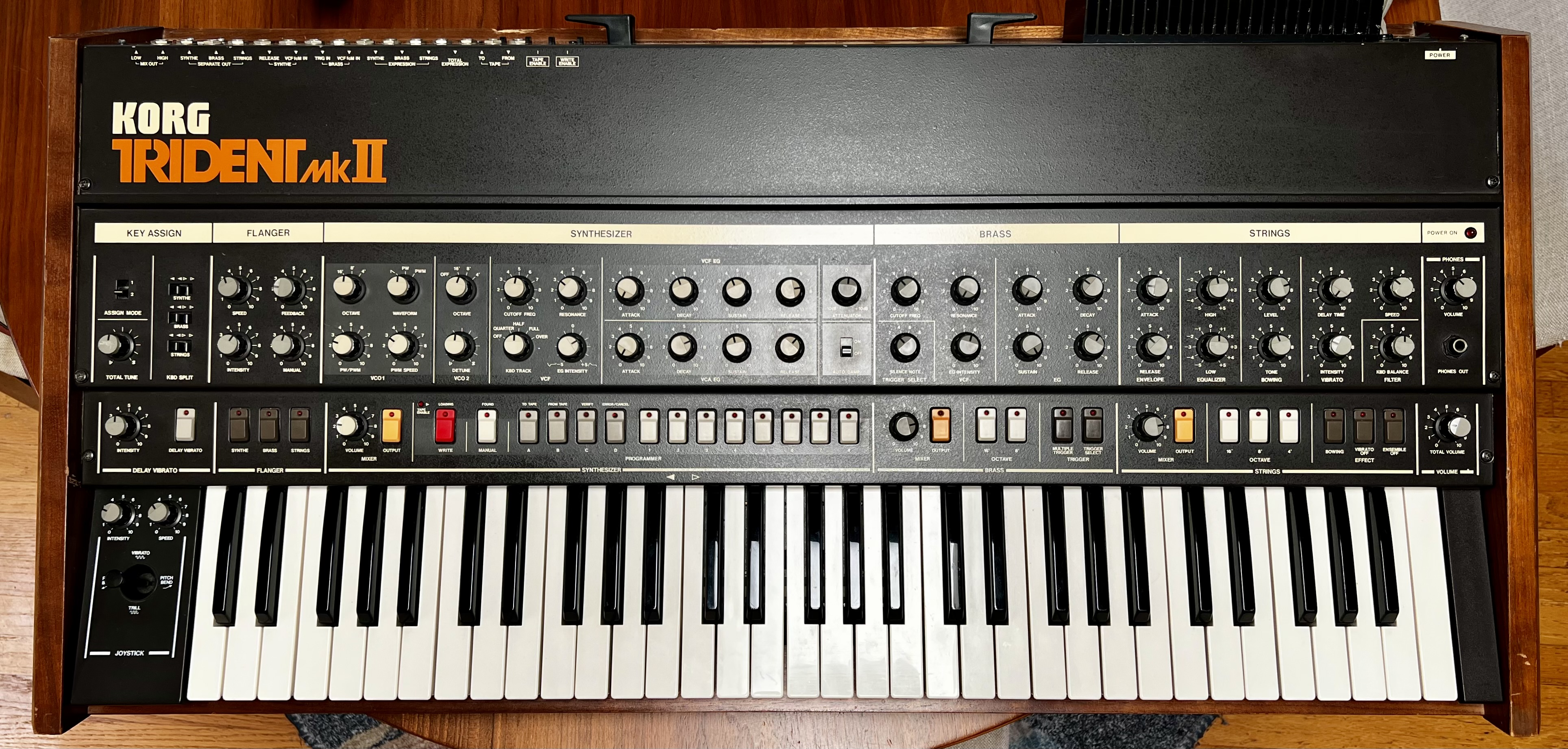 Korg Trident는 1981년에 출시된 3파트 멀티 신시사이저로, 스트링 머신, 폴리신스, 브라스 신스가 하나로 통합된 “하이브리드 폴리신스“의 대표적인 빈티지 명기입니다. 물리적으로도 큼직하고(약 24kg), 독특한 사운드와 구조 덕분에 80년대 신스팝, 뉴웨이브 음악에서 사랑받았으며, 오늘날까지도 컬렉터와 신스 애호가들에게 높은 평가를 받고 있습니다.