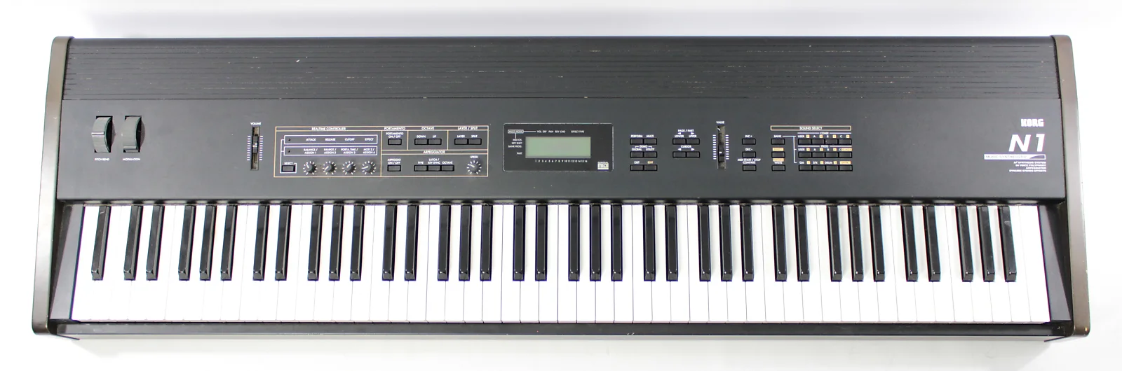 1998년에 Korg에서 출시된 신디사이저 및 MIDI 컨트롤러인 Korg N1입니다. 이 제품은 Bjork, Radiohead, Nine Inch Nails를 포함한 다양한 아티스트들에 의해 사용되었습니다. N1은 61개의 키로 구성된 신디사이저로, 내장된 시퀀서와 다양한 사운드 조형 도구를 갖추고 있습니다. 이는 FM, 추가 및 감산합성을 포함한 다양한 합성 유형을 특징으로 합니다. 또한 코러스, 플랜저, 딜레이를 포함한 다양한 효과를 갖추고 있습니다. N1은 내장된 아르페지에이터와 조이스틱, 리본 컨트롤러를 포함한 다양한 컨트롤러도 갖추고 있습니다.
