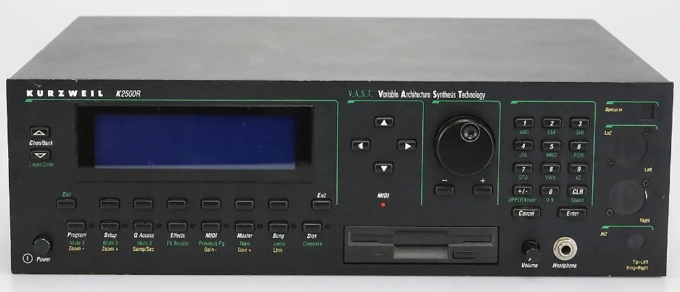 Kurzweil K2500R은 1990년대 중후반을 대표하는 3U 랙마운트 샘플+신시시스 워크스테이션입니다. K2000의 V.A.S.T. 엔진을 계승하면서도, 더 강력한 하드웨어, 확장된 사운드, 샘플링, 멀티아웃, SCSI, 디지털 입출력 등, 프로페셔널 스튜디오와 무대에 최적화된 “슈퍼 신스/샘플러”입니다.