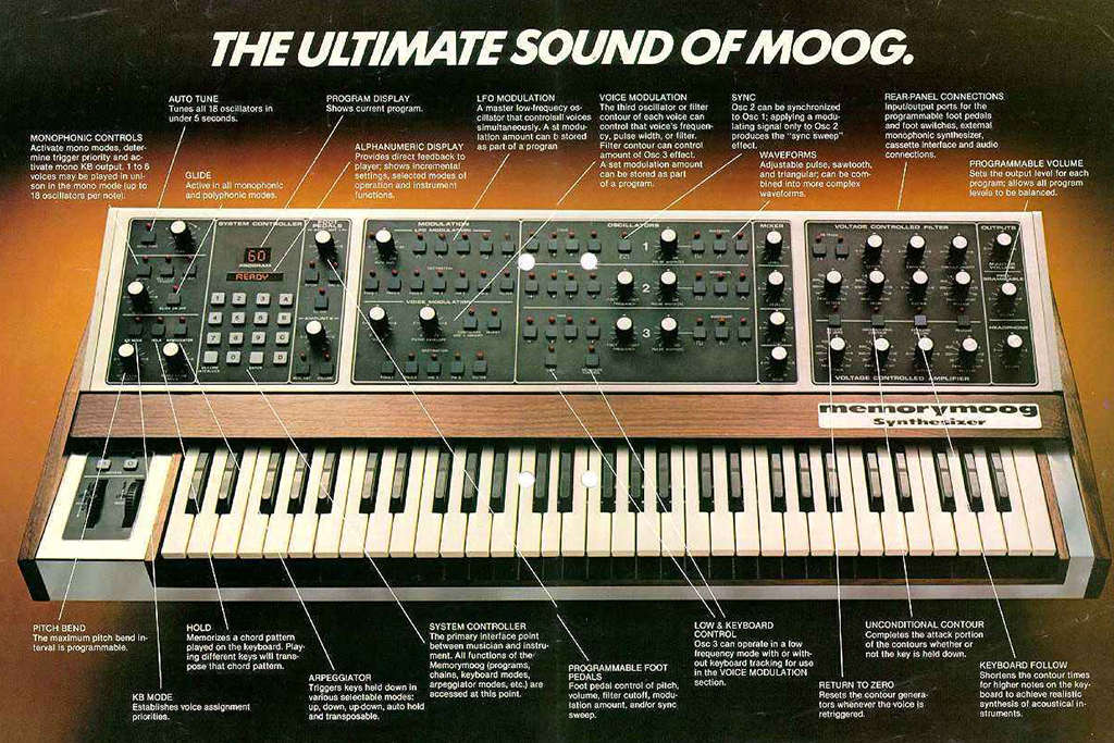 Memorymoog는 1982년에 Moog에서 출시한 마지막 공식 신디사이저로, Moog가 최종적으로 파산하고 사업을 종료하기 전에 만들어졌습니다. 이 신디사이저는 MIDI 기술이 막 도입되고 있었던 시기에 출시되어, MIDI 기능을 완전히 구현하지 못했습니다. Memorymoog에는 두 가지 버전이 있으며, 기본 모델인 Memorymoog와 자동 튜닝 기능이 추가된 Memorymoog Plus가 있습니다. Plus 모델은 기본 MIDI 구현과 시퀀서를 추가했으며, 더 안정적인 오실레이터 제어를 갖추어 표준 모델보다 컬렉터들에게 더 높은 가치를 지니게 되었습니다.