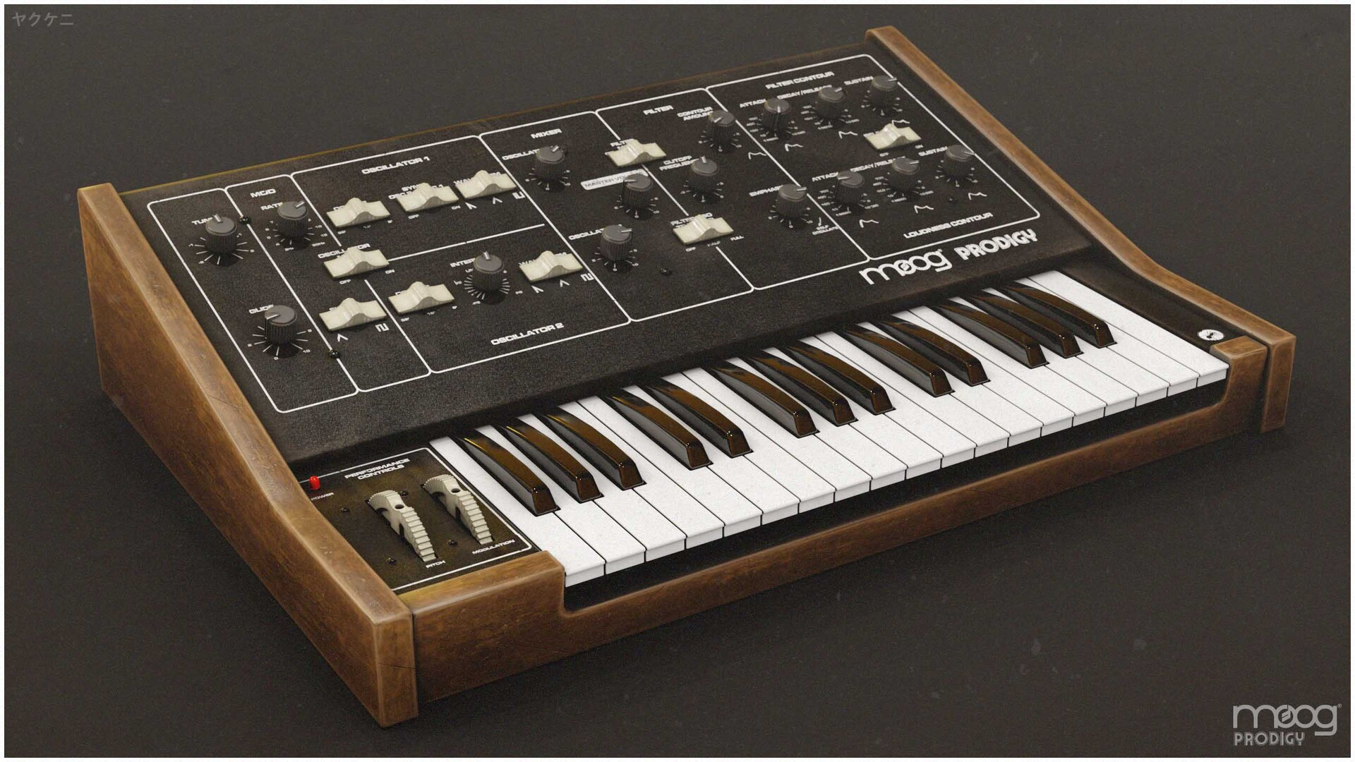 Prodigy의 간단하면서도 효과적인 디자인은 두 개의 전압 제어 오실레이터(VCO)와 톱니파, 삼각파 및 펄스파를 사용하며, 모두 클래식한 아날로그 기술입니다. 또한 24dB/옥타브 로우패스 필터, A/D/S 엔벨로프 생성기, 사각파 또는 삼각파 형태의 LFO가 포함되어 있습니다. 포르타멘토, 피치 및 모드 휠도 있습니다. 간단한 32 건반 키보드가 제공됩니다.
