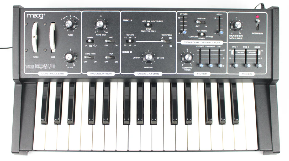 Moog Rogue는 저렴한 Moog 베이스의 대표적인 모델로, 이 이중 오실레이터 아날로그 모노포닉 신디사이저는 정통하고 매우 바람직한 Moog 부품을 갖추고 있습니다. 그러나 이 설계는 Moog의 가장 작고 저렴한 제품으로 만들기 위해 여러 기능을 간소화했습니다. 실제로, Moog는 Tandy/Radioshack에 라이선스를 부여하여 거의 동일한 리얼리스틱 콘서트메이트 MG-1을 제작하게 했으며, 이는 실제로 더 많은 기능을 제공했습니다. Rogue는 2-1/2 옥타브 키보드 대신 1-1/2 옥타브 베이스 페달 신스로도 사용될 수 있습니다.