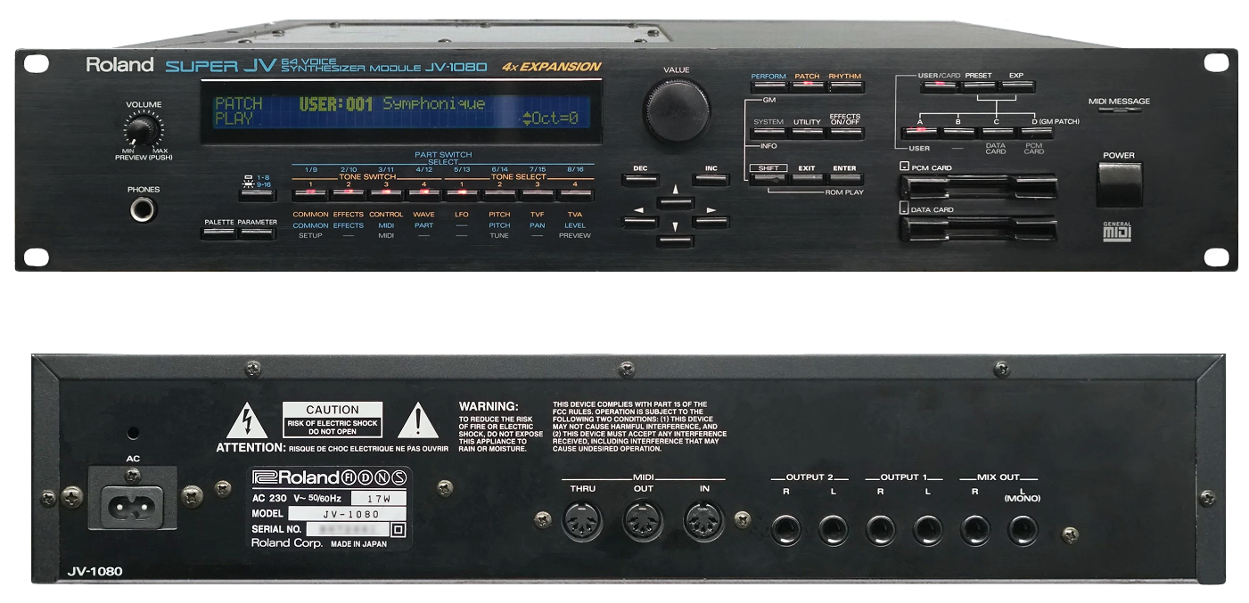 JV-1080은 디지털 샘플과 아날로그 합성을 결합하여 작동합니다. 64보이스 폴리포니를 갖추고 있어 한 번에 최대 64개의 음표를 재생할 수 있습니다. 리버브, 코러스, 딜레이 등 다양한 효과를 갖추고 있습니다. 또한 내장된 아르페지에이터와 다양한 프리셋 사운드를 제공합니다. 더불어 MIDI 인터페이스도 포함되어 있어 외부 MIDI 컨트롤러로부터 모듈을 제어할 수 있습니다.