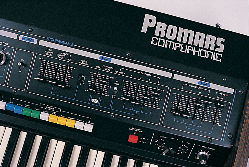 ProMars Compuphonic은 마이크로프로세서 제어를 통해 독특한 기능을 제공하는 신디사이저로, Intel 8048 프로세서를 사용하여 아날로그 VCO(Voltage-Controlled Oscillator), VCA(Voltage-Controlled Amplifier), VCF(Voltage-Controlled Filter)를 제어합니다. 이로 인해 패치 메모리를 갖춘 초기 아날로그 신디사이저 중 하나로 자리 잡았습니다.